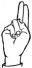 На ћирилици написано ЉУБИСЛАВ РАДОЈИЧИЋ састоји се из 17 слова [?]. Исписано ћириличном једноручном азбуком за глувонеме: